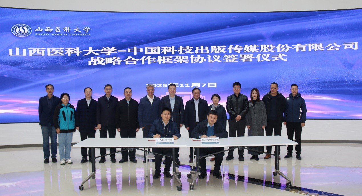 2025年11月7日上午,中國科技出版?zhèn)髅焦煞萦邢薰荆ㄒ韵潞喎Q“科學(xué)出版社”)黨委書記、董事長、總經(jīng)理胡華強(qiáng)率隊(duì)前往山西醫(yī)科大學(xué),同山西醫(yī)科大學(xué)校長解軍會(huì)面,就科學(xué)出版社與山西醫(yī)科大學(xué)開展進(jìn)一步的友好合作進(jìn)行了深入交流;隨后雙方共同出席了“山西醫(yī)科大學(xué)—中國科技出版?zhèn)髅焦煞萦邢薰緫?zhàn)略合作框架協(xié)議簽署儀式”。